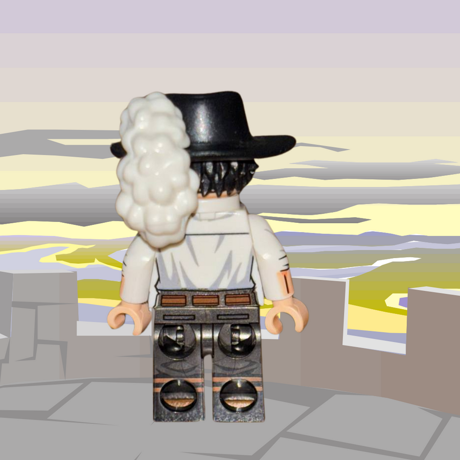 This custom brick minifigure of Dracule Mihawk, the world's greatest swordsman from One Piece, features a meticulously crafted full-body print of Mihawk in his iconic casual white dress shirt. The figure includes dual facial expressions: one capturing his famous snarl, and the other showcasing his raw emotion during his intense training sessions with Zoro. His detailed black hat with a plume and his legendary black blade, Yoru, complete the set, making this figure a must-have for fans.