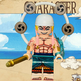 Unleash divine fury with the Enel Custom Brick Minifigure, featuring a detailed full-body print, iconic Shime-Daiko drum ring, elongated earlobe headpiece, golden staff with spear tip, and lightning hand accessory to replicate his Goro Goro no Mi powers. Fully LEGO-compatible and perfect for any One Piece fan or collector.