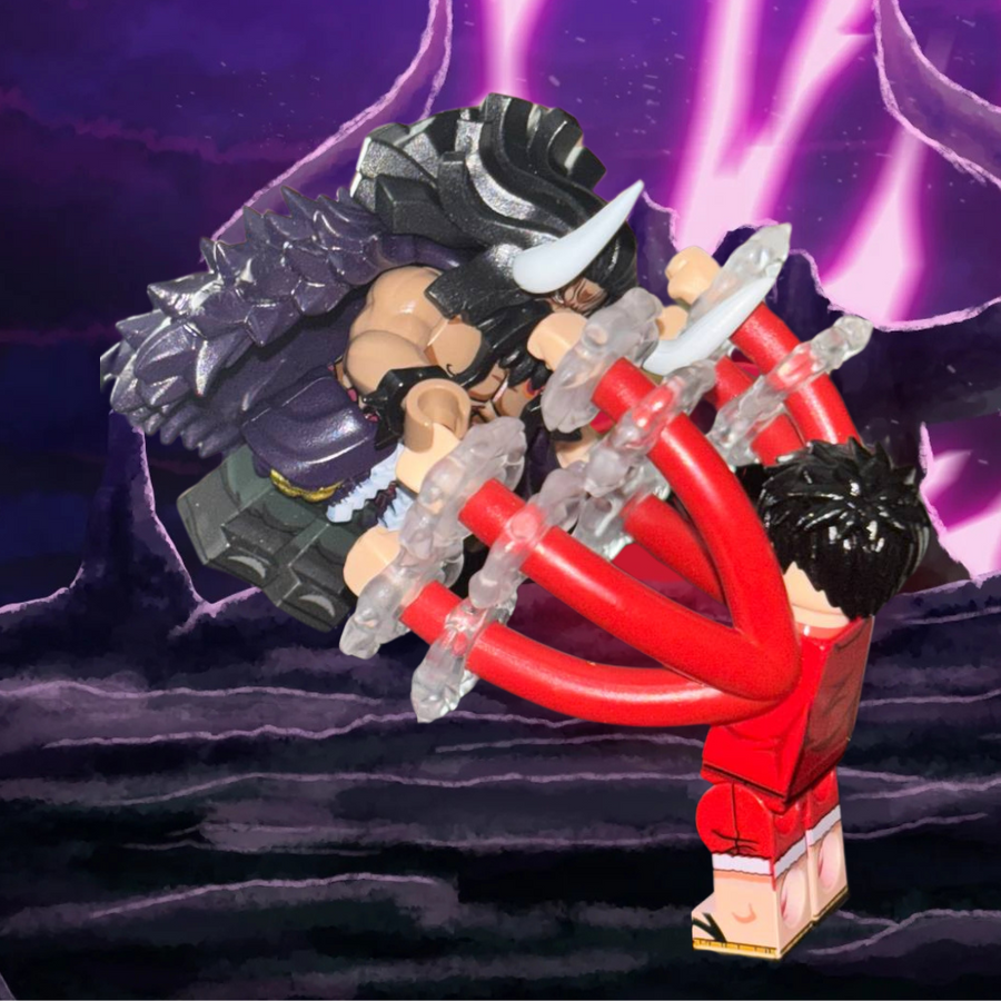 Unleash a storm of punches with this Gomu Gomu no Gatling Monkey D. Luffy minifigure, inspired by his fierce battles on Whole Cake Island! Decked out in his torn red vest and battle-worn shorts, this LEGO-compatible custom figure captures Luffy mid-assault, fists flying in rapid succession. A must-have for any One Piece fan ready to take on Big Mom’s forces!