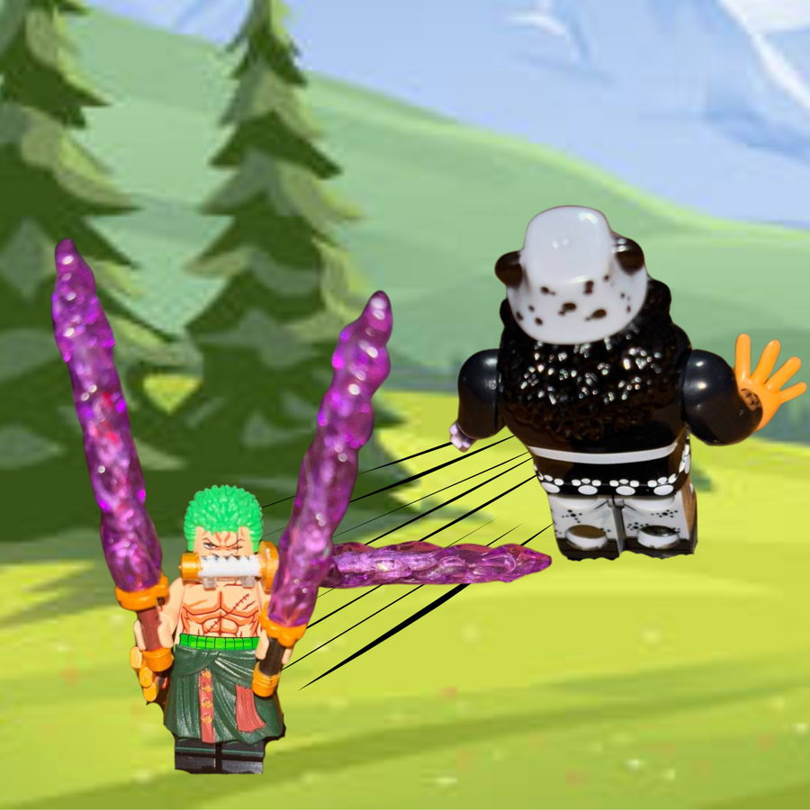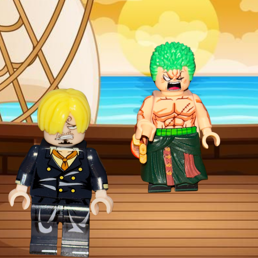 This custom brick minifigure of Roronoa Zoro is a must-have for any One Piece fan and collector. Featuring dual facial expressions, from his fierce, clenched teeth to his iconic "damned cook" scowl, this figure brings Zoro’s intense personality to life. Equipped with his three swords, haki effects, and a custom neck attachment for his sword-in-teeth pose, it’s the ultimate tribute to the swordsman. With a detailed green robe, full-body print, and screen-accurate green hair, this figure perfectly captures Zoro’s iconic look. Build, display, and enjoy!