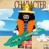 Add some rock ‘n’ roll to your collection with this Soul King Brook custom brick minifigure! Featuring his iconic shark bass guitar, sword with frozen ice effects, and vibrant orange rockstar scarf, this figure captures Brook’s unique personality. With a custom afro, crown headpiece, and dual faces – one carefree and singing, the other intense in battle – it’s the ultimate collectible for any One Piece fan!