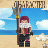 Unleash the power of Charlotte Katakuri, one of the fiercest foes Luffy has ever faced, with this highly detailed minifigure. Inspired by his Whole Cake Island appearance, this figure features a custom full body print showcasing his battle-ready stance, custom hair piece, and signature white scarf. Katakuri comes armed with his trident spear, making him a formidable addition to any collection.