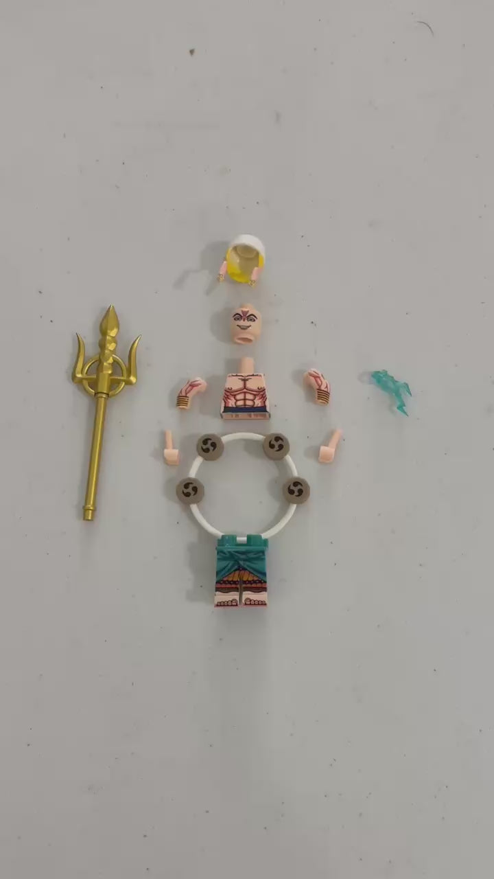 Unleash divine fury with the Enel Custom Brick Minifigure, featuring a detailed full-body print, iconic Shime-Daiko drum ring, elongated earlobe headpiece, golden staff with spear tip, and lightning hand accessory to replicate his Goro Goro no Mi powers. Fully LEGO-compatible and perfect for any One Piece fan or collector.