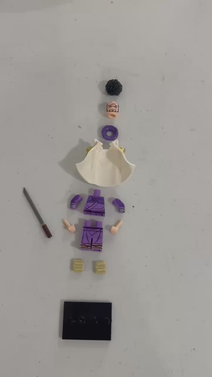 Bring the legendary gravity-wielding Admiral to your collection with this custom Fujitora minifigure, designed for fans of One Piece! Featuring a detailed full-body print of his iconic purple robe and Marine uniform, this figure perfectly captures his commanding presence. His flowing Admiral cape, custom black hairpiece, and anime-accurate sandals add to the authenticity, making him a standout piece.